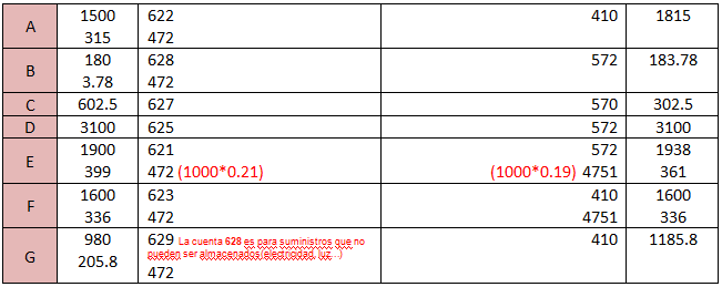 6. La empresa FTY, S. A. recibe la factura de un profesional independiente por importe de 2.300 € más 21% de IVA. ¿En que cuenta recogerá la obligación?